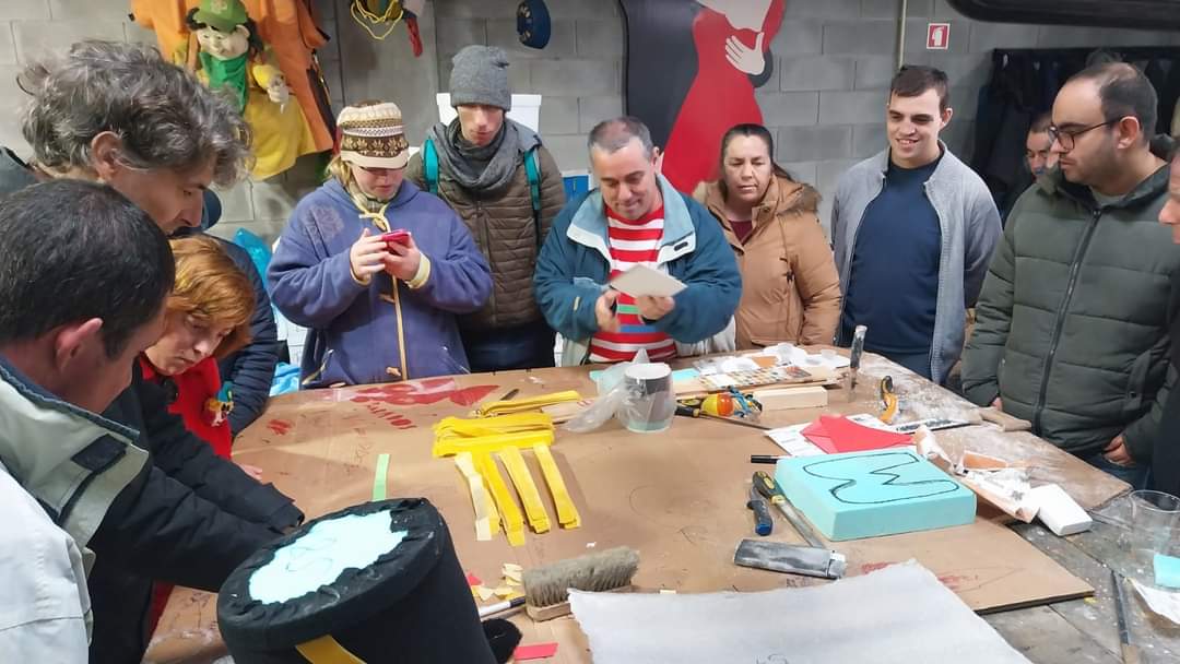 O Grupo de Carnaval Marados, na pessoa de Manuel Almeida, abriu as suas portas e para além de uma breve explicação sobre toda a metodologia que envolve um Grupo/Escola do nosso Carnaval, possibilitou a elaboração de um dos adereços por parte dos utentes.